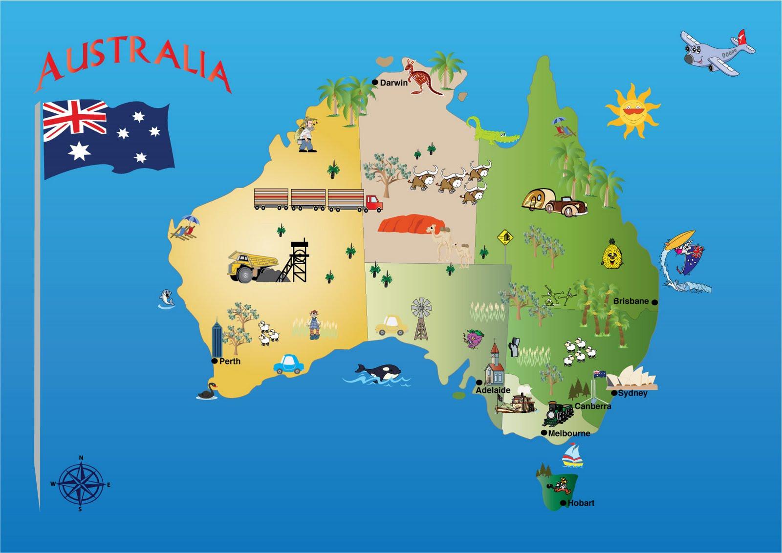 Austrália mapa de atrações turísticas. Austrália atrações do mapa (Austrália e Nova Zelândia - Oceania) para imprimir. Austrália atrações do mapa (Austrália e Nova Zelândia - Oceania) para download.